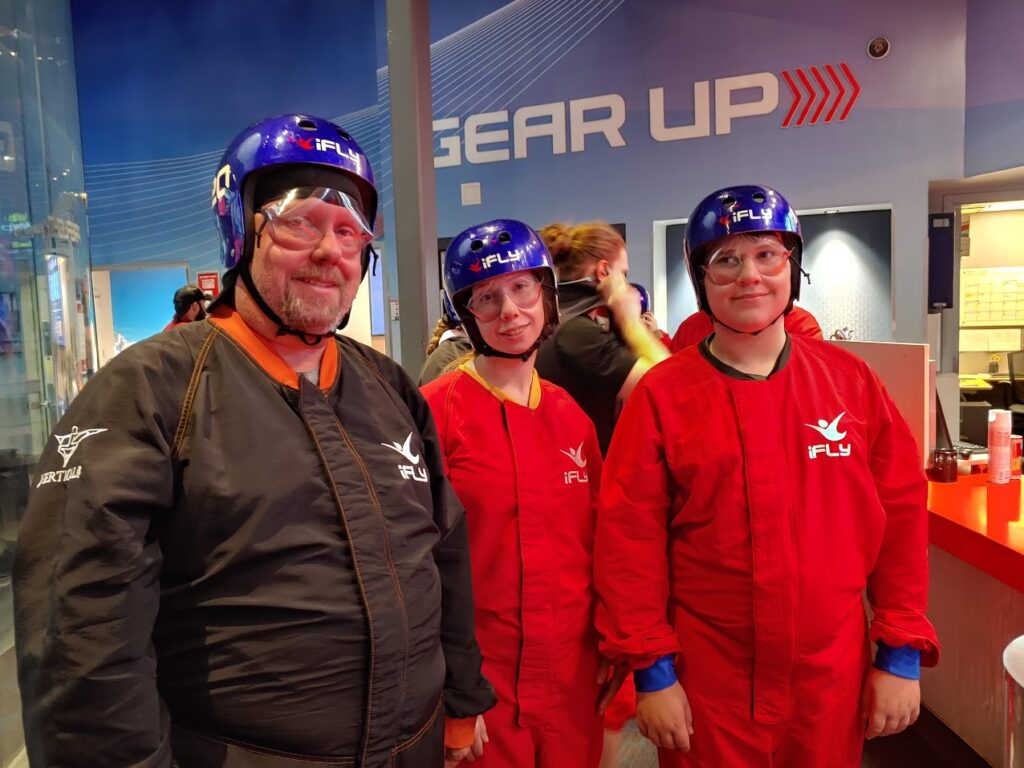 This coincided with Elizabeth’s 18th birthday. Fying at iFly was the answer to the challenge of what would delight her. You can see her “high flight” here, and her solo flight here. It was at Halloween time and Michael showed us how he got into this costume which was quite a process. It’s here